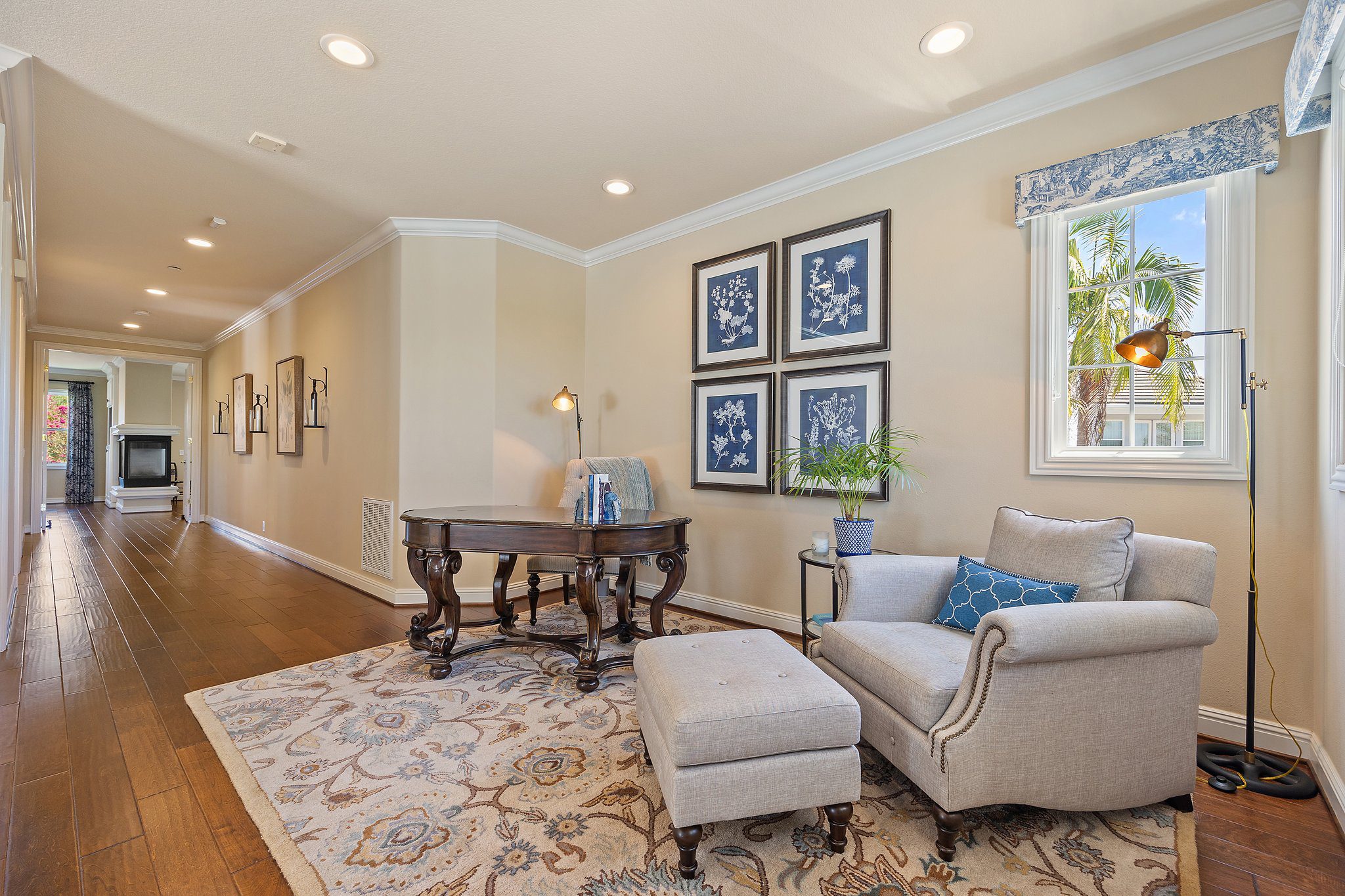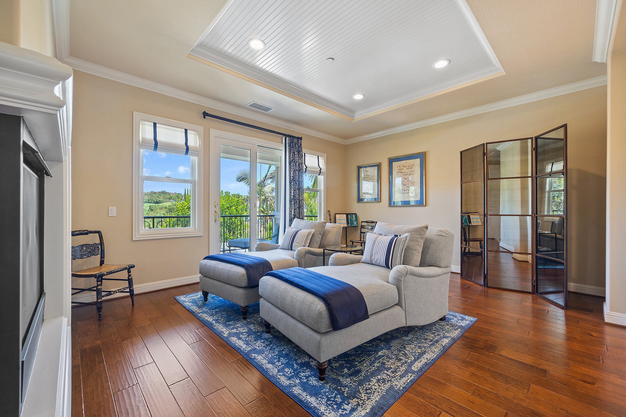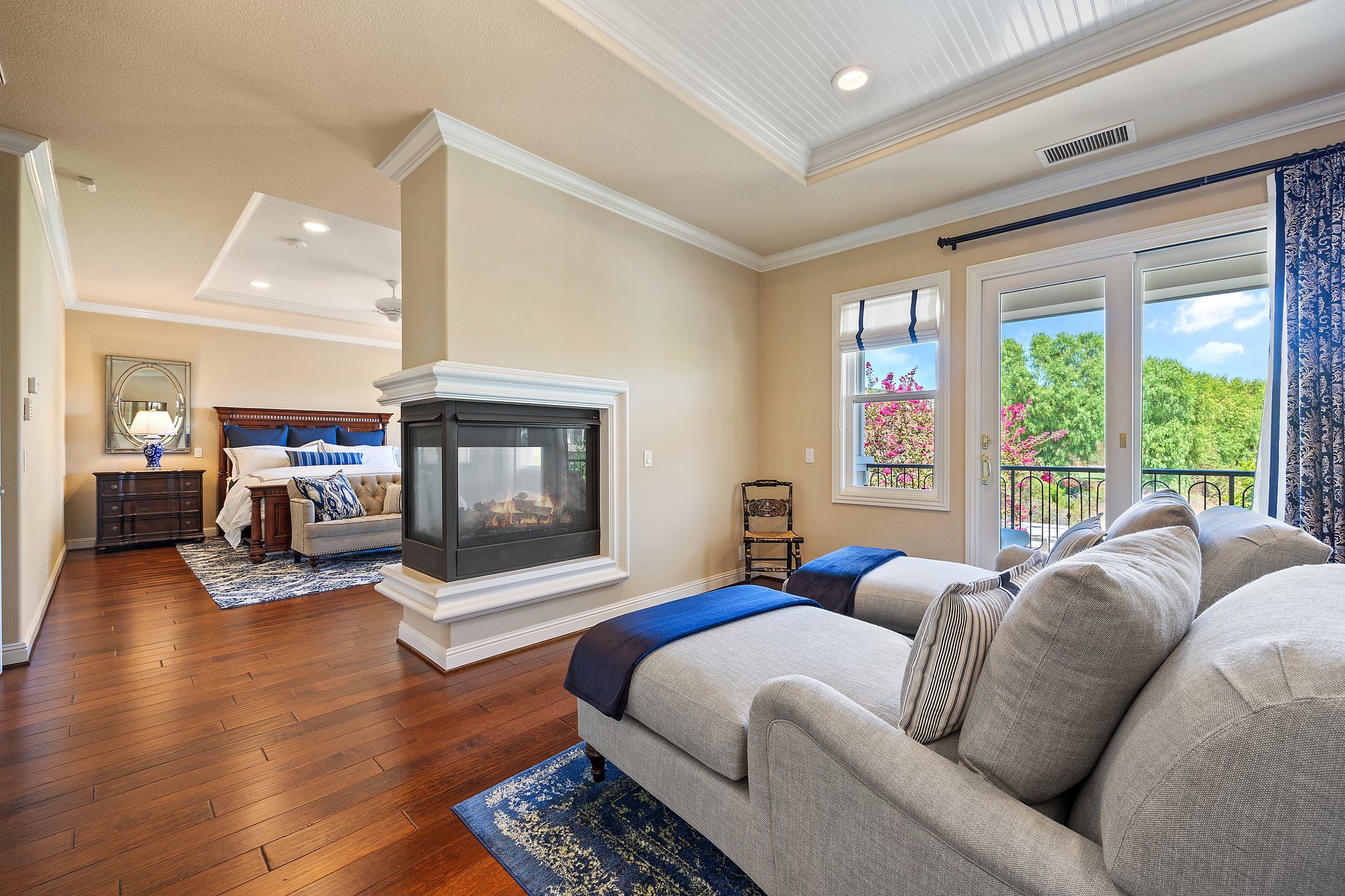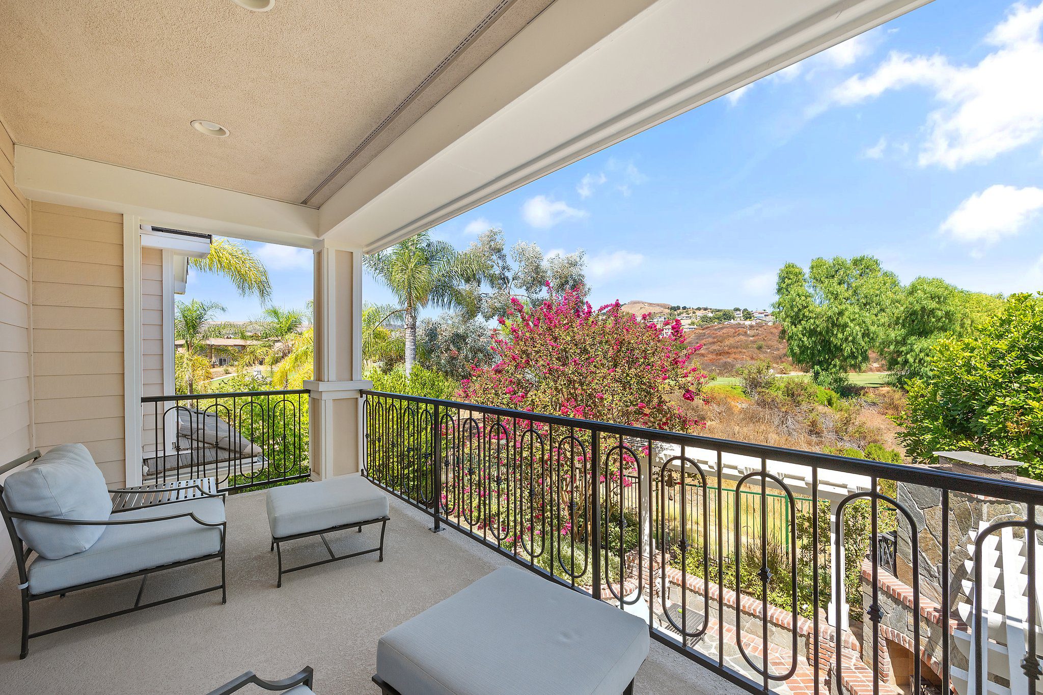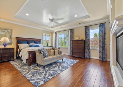 Experience unparalleled luxury in this 4,302 sq. ft. estate, perfectly situated on a tranquil cul-de-sac with views of a serene bird sanctuary and Black Gold Golf Course. This impeccable home has been professionally decorated and features 4 spacious bedrooms each with a private bathroom, including a convenient downstairs suite. The downstairs also features a dedicated office, an expansive great room with a gourmet kitchen, formal dining and living areas, and a versatile loft upstairs. The master suite boasts its own living room, a balcony with natural views, a jetted tub, an oversized shower, and a generous walk-in closet. Highlights include soaring ceilings, walnut wood floors, custom finishes, Monogram appliances, three indoor fireplaces, and a striking chandelier. Outdoors, enjoy refined hardscaping, an upgraded balcony, a covered patio, an outdoor fireplace, and lush landscaping. No HOA or Mello Roos. This estate offers an exceptional blend of sophistication, comfort, and natural beauty, and is conveniently located near shops, dining, parks, top schools, and freeways. A true must-see, this home is presented in model-like condition.