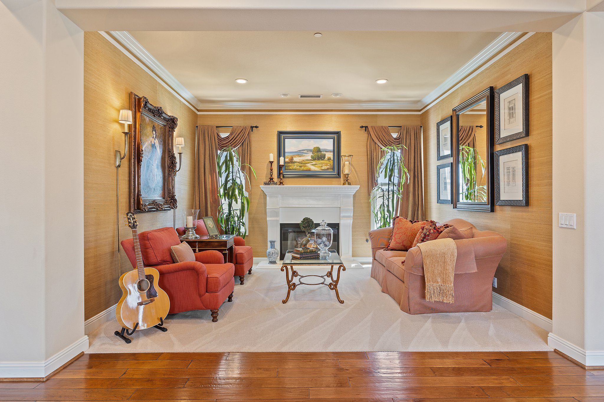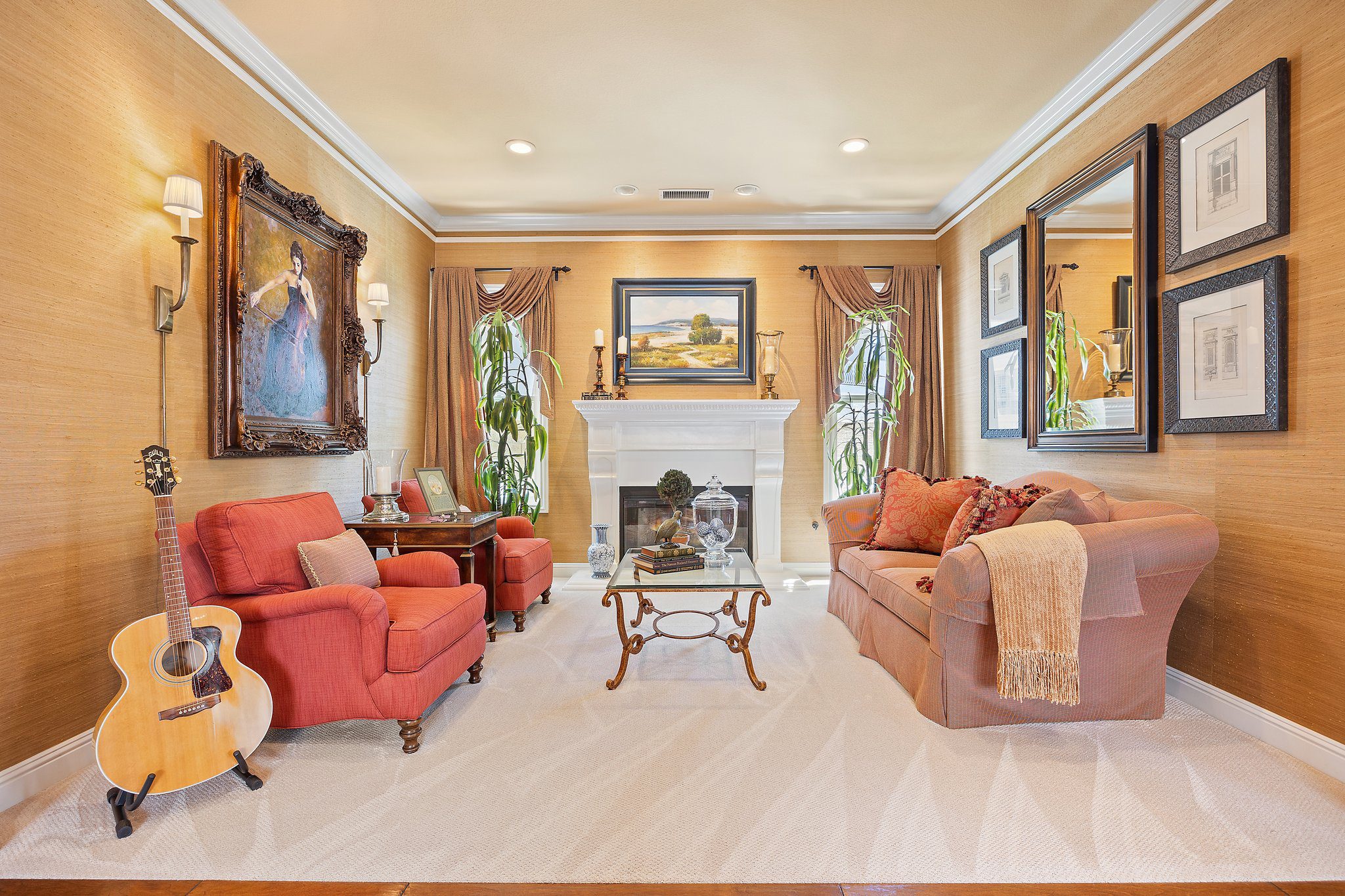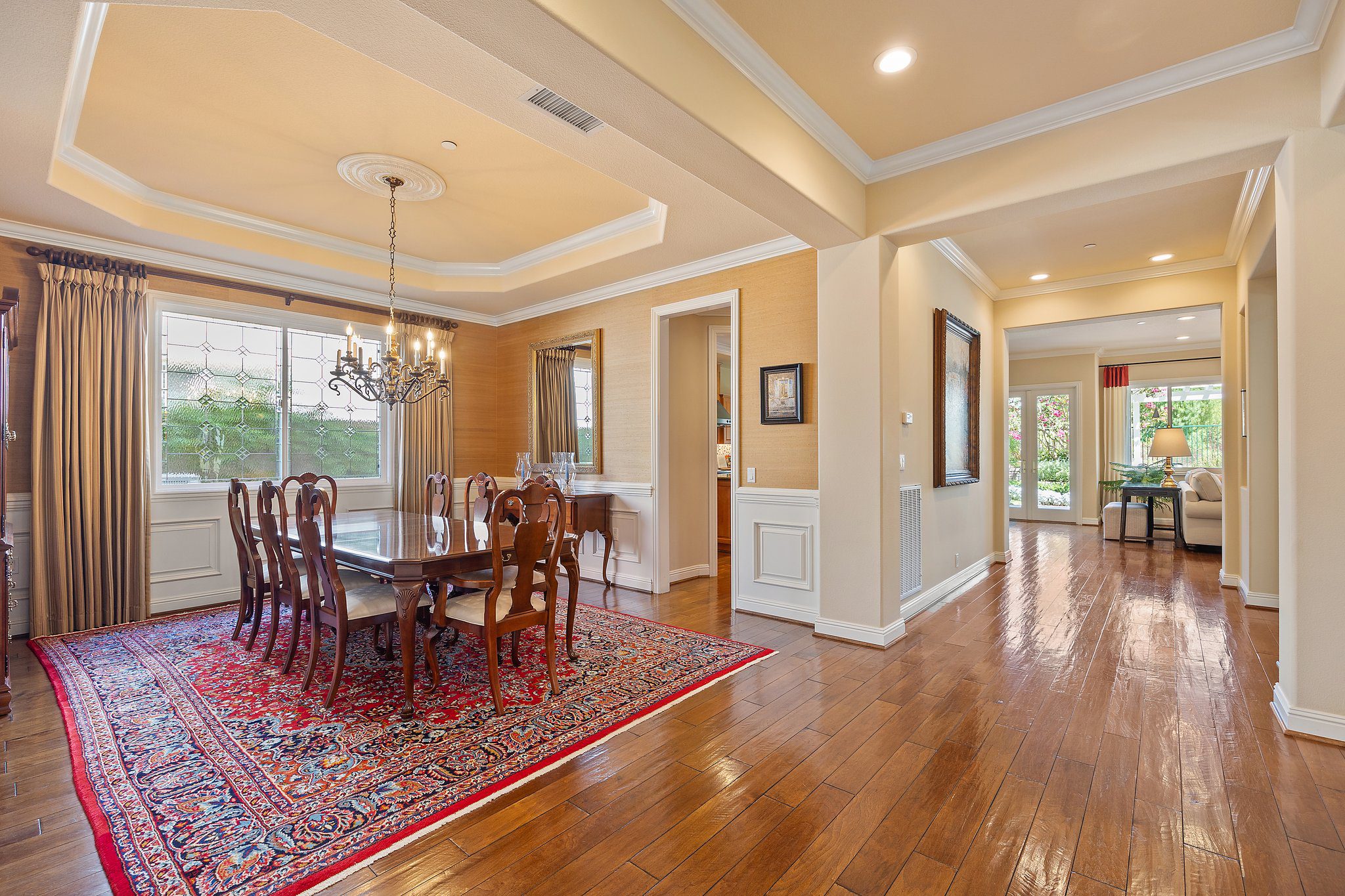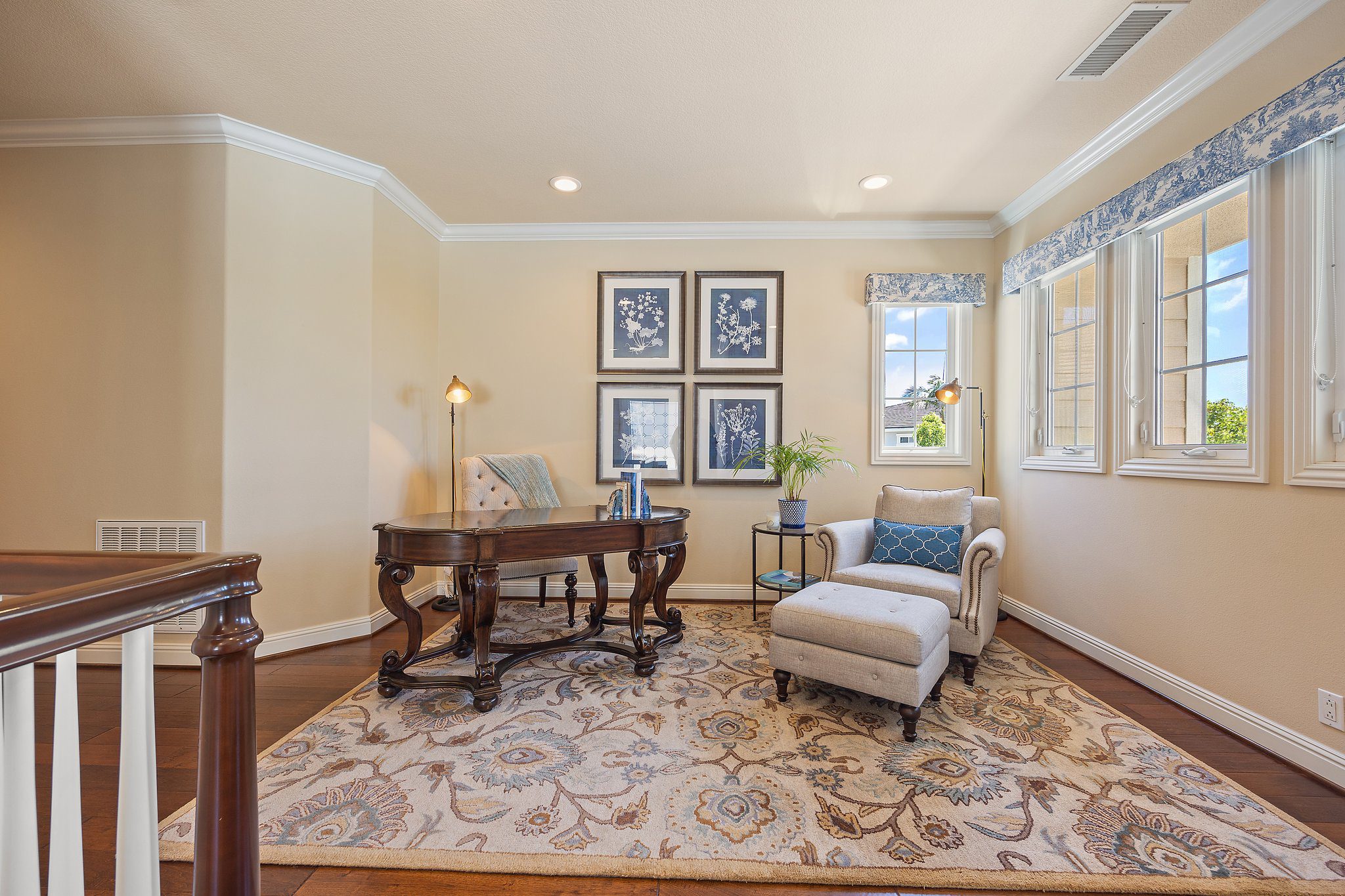 Experience unparalleled luxury in this 4,302 sq. ft. estate, perfectly situated on a tranquil cul-de-sac with views of a serene bird sanctuary and Black Gold Golf Course. This impeccable home has been professionally decorated and features 4 spacious bedrooms each with a private bathroom, including a convenient downstairs suite. The downstairs also features a dedicated office, an expansive great room with a gourmet kitchen, formal dining and living areas, and a versatile loft upstairs. The master suite boasts its own living room, a balcony with natural views, a jetted tub, an oversized shower, and a generous walk-in closet. Highlights include soaring ceilings, walnut wood floors, custom finishes, Monogram appliances, three indoor fireplaces, and a striking chandelier. Outdoors, enjoy refined hardscaping, an upgraded balcony, a covered patio, an outdoor fireplace, and lush landscaping. No HOA or Mello Roos. This estate offers an exceptional blend of sophistication, comfort, and natural beauty, and is conveniently located near shops, dining, parks, top schools, and freeways. A true must-see, this home is presented in model-like condition.
