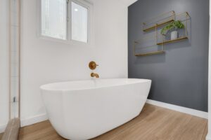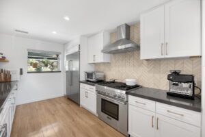 Discover this exquisite, fully remodeled home in the highly sought-after Golden Hills neighborhood, where virtually every square inch has been transformed into a bright and modern sanctuary, perfect for entertaining. Upon entering, you’ll be welcomed by an open-concept living area with a gourmet kitchen, theater room and living room. The thoughtfully designed layout features a primary bedroom with an ensuite bathroom, alongside a second main floor bedroom and a guest bathroom. The kitchen features white shaker cabinets, quartz countertops, a six-burner stove with griddle, built in fridge, premium stainless steel appliances, and a breakfast bar, all reflecting the owner’s commitment to quality. Luxurious bathrooms boast walk-in showers and a soaking tub, complemented by dual-paned beveled windows and smooth finishes throughout. Additional recent upgrades—include a house water softener, luxury plank vinyl flooring, custom window shades, new plumbing, AC, a tankless water heater, and more. The fully remodeled exterior offers a stunning front patio, a wrap-around deck ideal for gatherings, and low-maintenance artificial turf. This fully gated property features remote entry and has no HOA fees, making it an exceptional find. Conveniently located near shops, fine dining, freeways, schools, parks, and walking and biking trails, don’t miss the opportunity to claim this luxurious residence as your own!